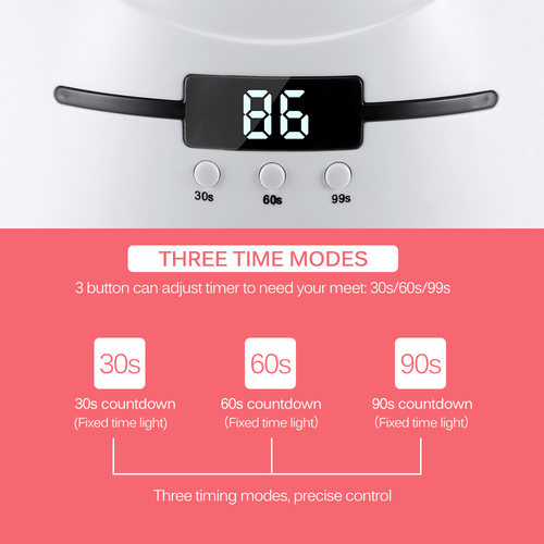 3 button can adjust timer to need your meet: 30s/60s/99s