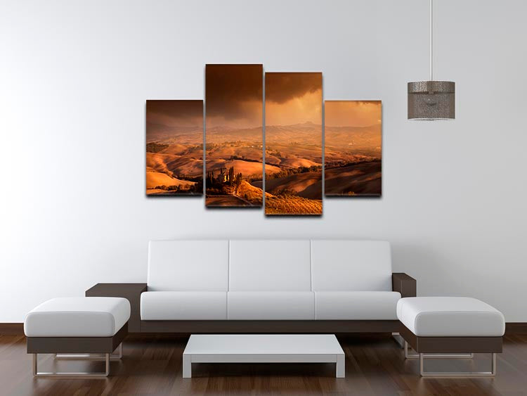 Another advantage of the Val Orcia 4 Split Panel Canvas is its versatility in hanging configurations. You can arrange the panels in a straight line, stagger them, or even create a unique pattern that suits your personal style and the layout of your space. This flexibility makes it easy to customize your decor, ensuring that your artwork complements your existing furnishings and color schemes.