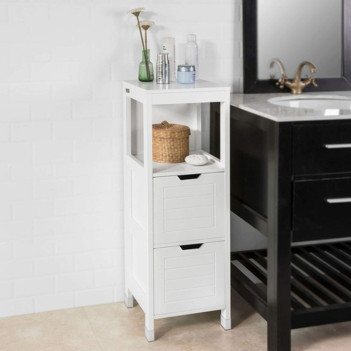 - It has 1 shelf and 2 drawers, provides enough storage space for all your bathroom essentials.
