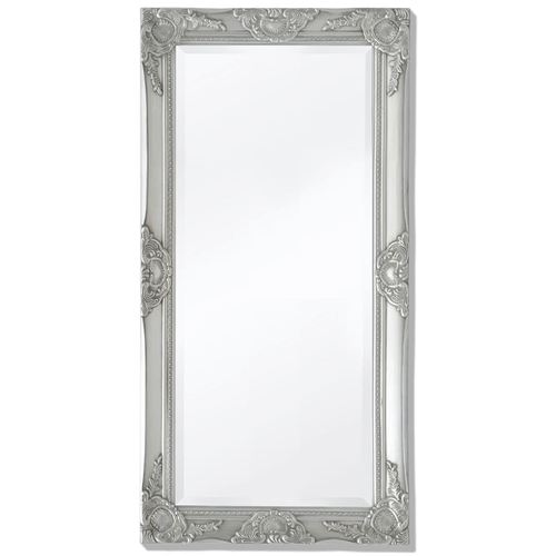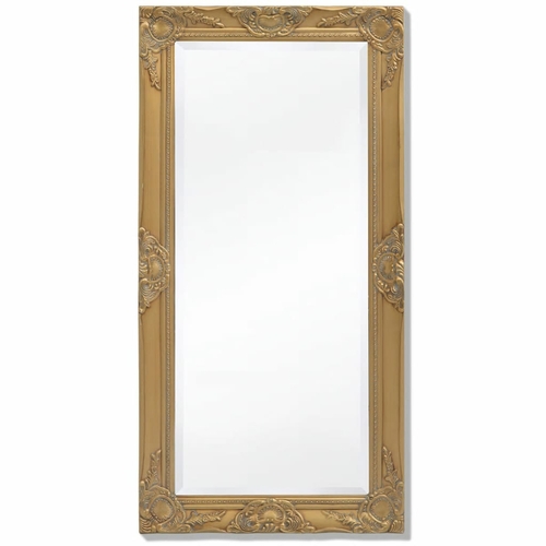 The antique-look mirror has a sturdy wooden frame that has been meticulously crafted in a decorative Baroque pattern. In addition, the beveled edge gives this mirror a unique look.