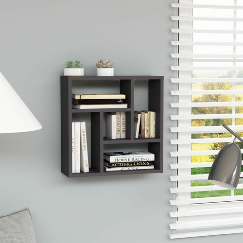 This modern floating shelf has 5 compartments, making it an ideal place for keeping your books, DVDs or other items safe and sound. This wall-mounted shelf, made of a strong board, is sturdy and durable. It is also easy to clean with a damp cloth.