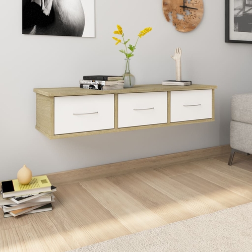 This floating shelf with 3 drawers will offer an ideal display and storage solution for any home. As a versatile cabinet, you can place it in the hallway to organize keys, in the living room to display photos and decorative items; and also under a wall mirror to create a makeup area. Additionally, crafted from quality board, this floating shelf is built to last.