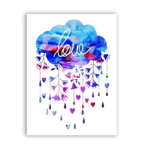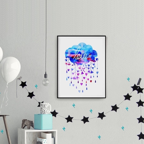 Dropship Watercolor Cloud And Rain With Heart Wall Art