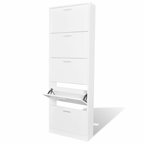 This wooden shoe cabinet has 5 storage compartments and a simple, yet stylish design. You will no longer be annoyed by shoes cluttering your floor.