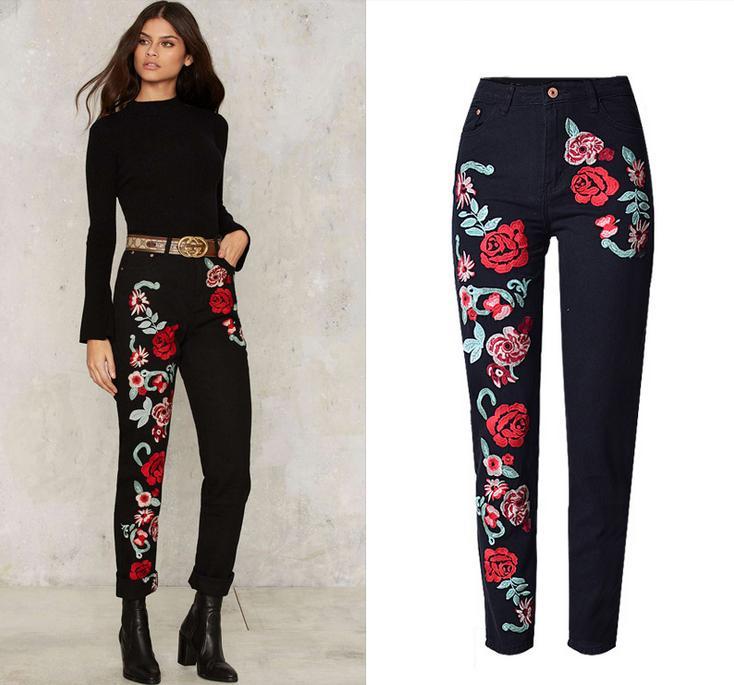 Whether you're heading out for brunch with friends, a casual day at work, or a weekend getaway, these Women's Jeans Embroidered Flowers Boyfriend Fashion in Black are the perfect choice. Their stylish design and comfortable fit make them suitable for any occasion, ensuring you look and feel your best.