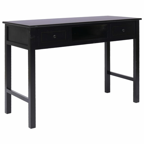 Made of quality paulownia and poplar wood, this desk is sturdy and durable. It features 2 drawers and 1 open compartment in the middle for keeping your files and other home office essentials organized and within easy reach.