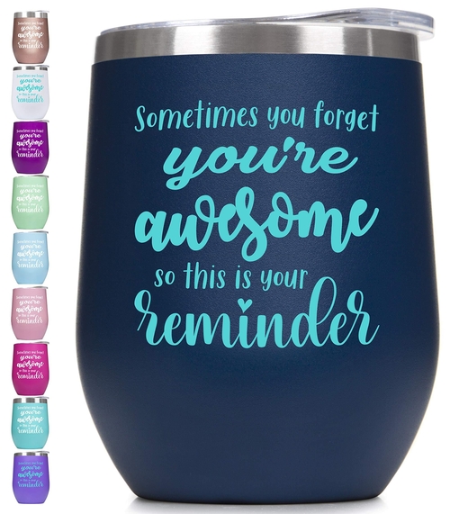 UNIQUE GIFTS FOR WOMEN: Characterized by its saying Sometimes you forget youre awesome so this is your reminder, our pretty cup makes an inspirational cute unusual thoughtful fabulous uplifting present for any women in your life. Novelty fun useful gifts for your relatives, coworkers, employees, principal, best friend, bff, wife, special lady, sister in law, mom, daughter, boss, doctor, nurse, assistant, aunt, cousin, niece, grandma, nana, mimi, teacher, coach, professor, lawyer, manager