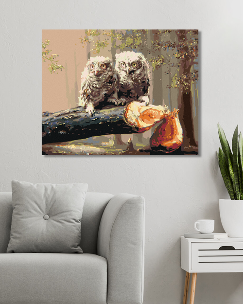 Dropship Zuty - Paint by Numbers - BABY OWLS IN A FELLED TREE (D. RUSTY RUST),