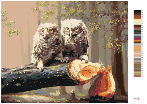 Zuty - Paint by Numbers - BABY OWLS IN A FELLED TREE (D. RUSTY RUST),