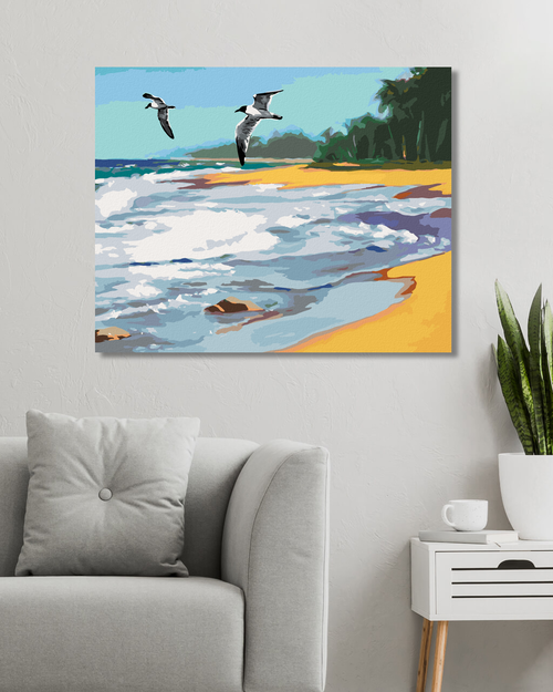 Dropship Zuty - Paint by Numbers - BIRDS FLYING OVER THE BEACH (D. RUSTY RUST),