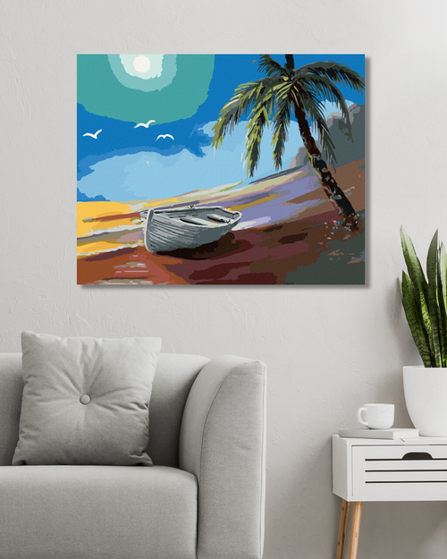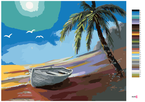 Dropship Zuty - Paint by Numbers - BOAT BY THE SHORE AND PALM TREE (D. RUSTY