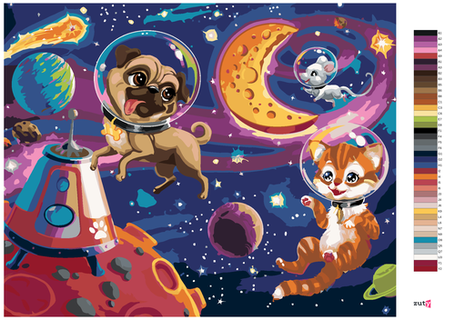 Zuty - Paint by Numbers - CARTOON DOG, CAT AND MOUSE IN SPACE (IMAGE