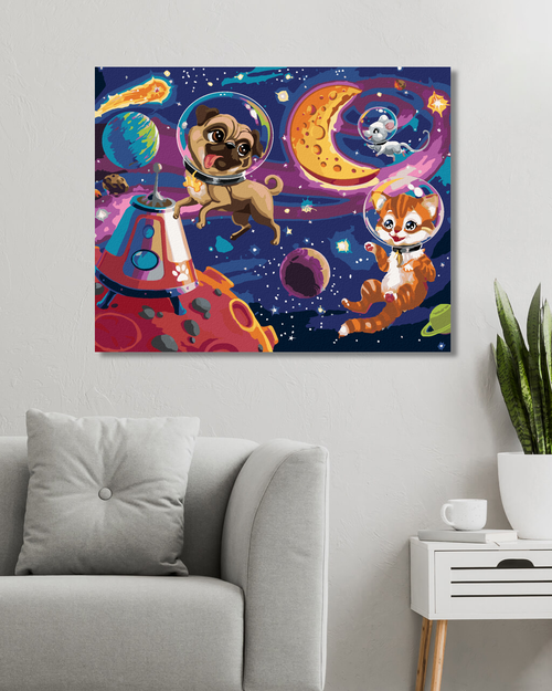 Dropship Zuty - Paint by Numbers - CARTOON DOG, CAT AND MOUSE IN SPACE (IMAGE