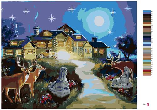 Dropship Zuty - Paint by Numbers - DEER AND DOE BY THE HOUSE (D. RUSTY RUST),