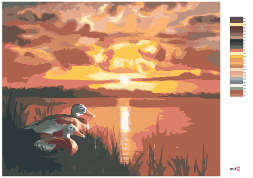 Zuty - Paint by Numbers - DUCKS AND THE SUNSET (D. RUSTY RUST), 40x50