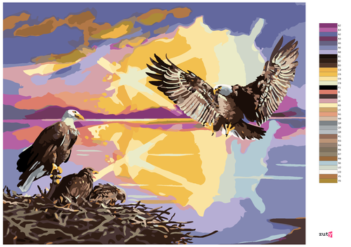 Dropship Zuty - Paint by Numbers - EAGLE AND CHICKS (D. RUSTY RUST), 40x50 cm