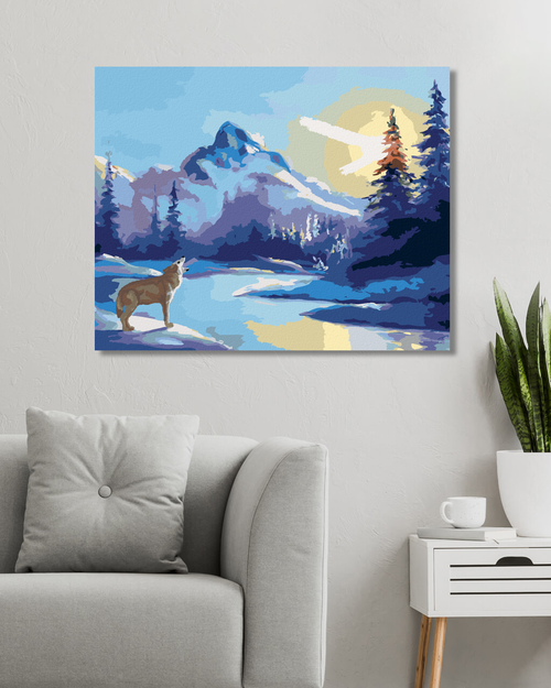 Dropship Zuty - Paint by Numbers - HOWLING WOLF, SUN AND MOUNTAINS (D. RUSTY
