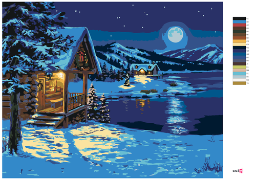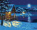 Dropship Zuty - Paint by Numbers - HUTS IN WINTER BY THE LAKE UNDER THE FULL