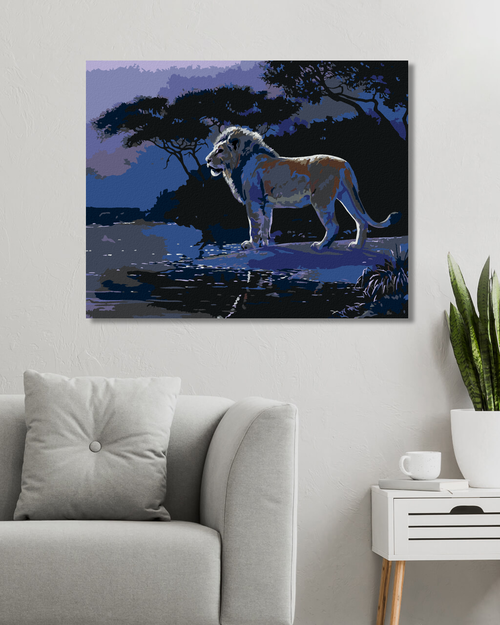 Zuty - Paint by Numbers - LION AT NIGHT BY THE WATER (AL AGNEW), 40x50