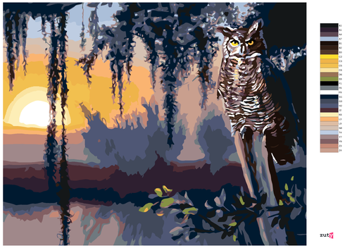 Dropship Zuty - Paint by Numbers - OWL AND SUNSET (D. RUSTY RUST), 40x50 cm