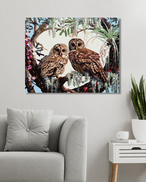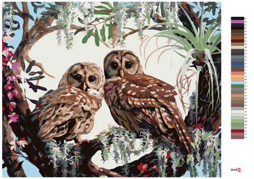 Dropship Zuty - Paint by Numbers - OWLS AND HEARTS OF BRANCHES (D. RUSTY RUST),