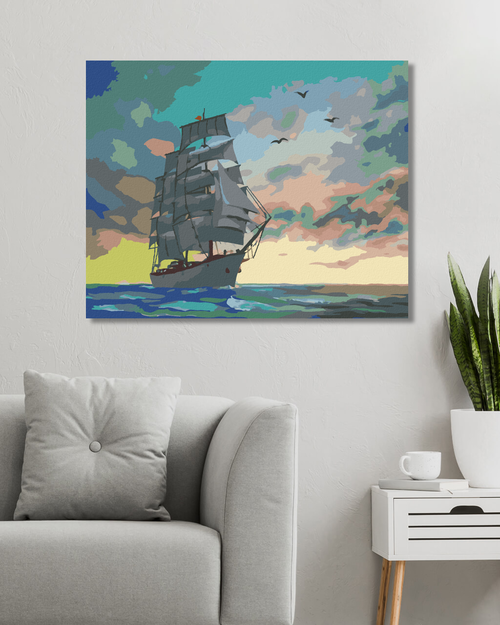 Dropship Zuty - Paint by Numbers - SAILING SHIP AND COLOURED CLOUDS (D. RUSTY