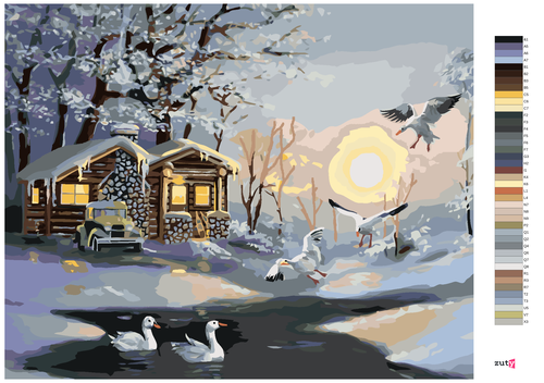 Zuty - Paint by Numbers - SEAGULLS AT THE SNOWY HOUSE (D. RUSTY RUST),