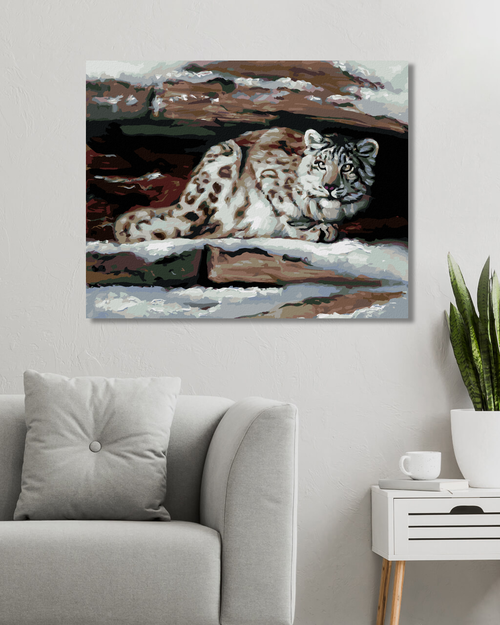 Dropship Zuty - Paint by Numbers - SNOW LEOPARD IN A SHELTER (D. RUSTY RUST),