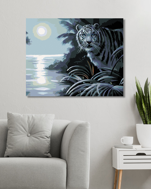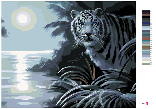 Dropship Zuty - Paint by Numbers - WHITE TIGER, RIVER AND FULL MOON (D. RUSTY