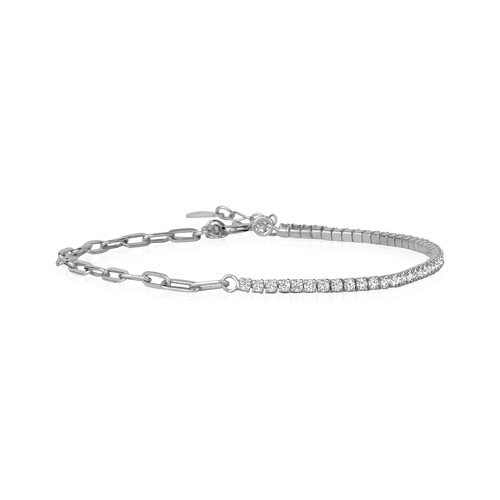 This stylish bracelet features a unique rhinestone and paperclip chain design, making it a versatile accessory for both everyday wear and special occasions. The lightweight construction ensures that you can wear it comfortably throughout the day, while the eye-catching 5A Cubic Zirconia stones add a touch of sparkle and sophistication. Whether you're dressing up for a night out or adding a bit of flair to your casual outfit, this bracelet is sure to grab attention wherever you go.