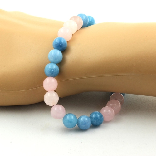 Blue Chalcedony + Rose Quartz Bracelet 8 mm Beads.