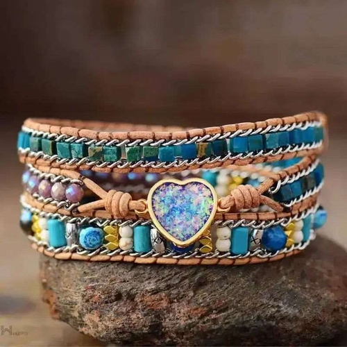 The bohemian style of this bracelet makes it a versatile accessory that can be paired with a wide range of outfits. Whether you're wearing a casual t-shirt and jeans or a flowing summer dress, the Blue Heart Opal Leather Bracelet adds a unique touch that enhances your overall look. Its eye-catching design is sure to draw compliments and make a statement wherever you go.