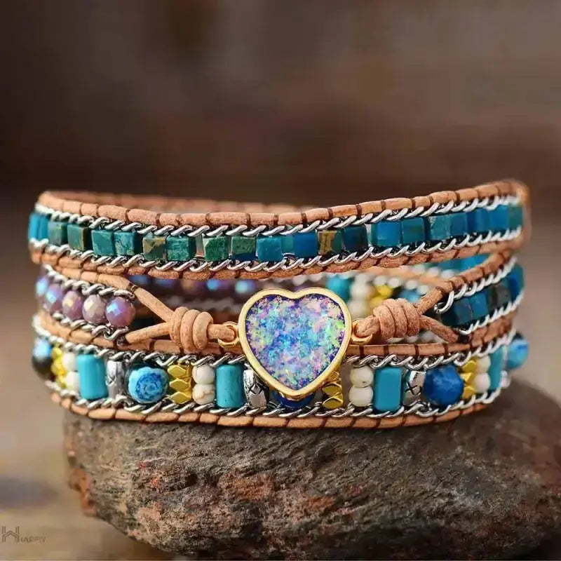Looking for a thoughtful gift for a friend or loved one? The Blue Heart Opal Leather Bracelet is an excellent choice. Its unique design, combined with the soothing properties of the opal stones, makes it a meaningful gift that can be cherished for years to come. Whether it's for a birthday, anniversary, or just because, this bracelet is sure to delight anyone who receives it.