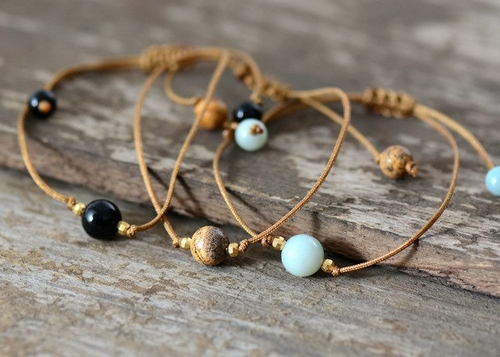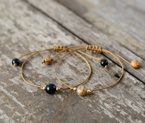 Dropship Boho Bracelet Handmade Natural Stone Wax Cord