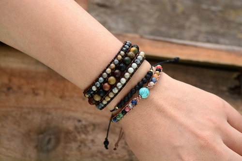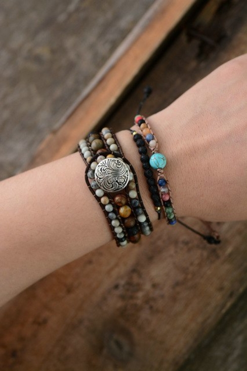 Dropship Boho Bracelets Natural Stones Lava Rock Leather