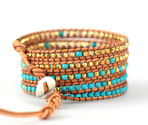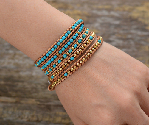 Dropship Boho Women Leather Bracelet Unique Stones Gold