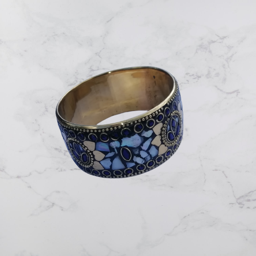 Dropship Bohotusk Blue and Aqua Marine Mosaic Brass Bangle Bracelet