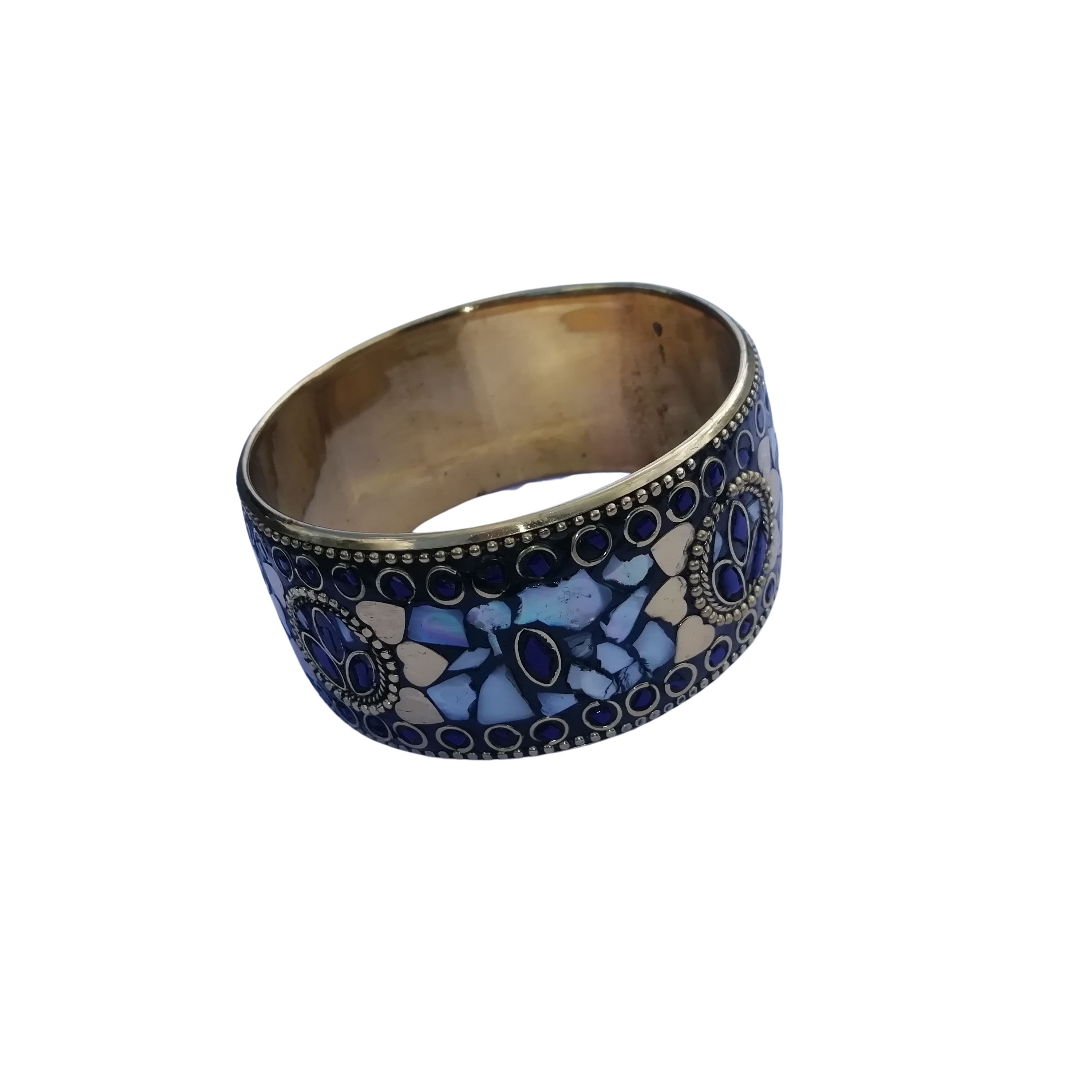 Bohotusk Blue and Aqua Marine Mosaic Brass Bangle Bracelet featuring intricate mosaic detailing and vibrant aqua marine stones.
