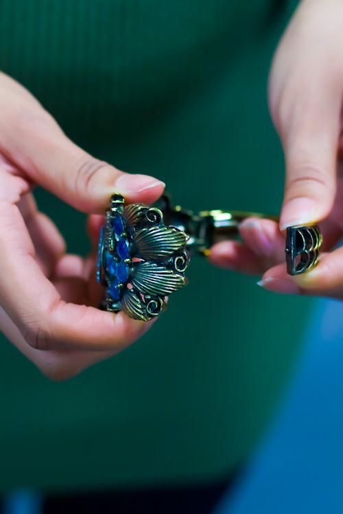 The Antique Series Indigo Bracelet features a stunning design that stands out in any collection. Its statement style makes it perfect for special occasions or as an everyday accessory. The genuine antique brass material ensures durability while providing a vintage charm that complements various outfits.