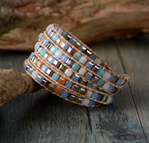 Dropship Fashion Crystals 5 Rows Beaded Leather Wrap