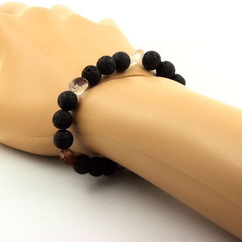 Green Ghost Quartz from Brazil + Lava Bracelet 8 mm Beads.
