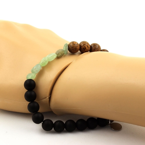 Green Kyanite from Brazil + Matte Black Onyx + wood Bracelet 8 mm Beads.