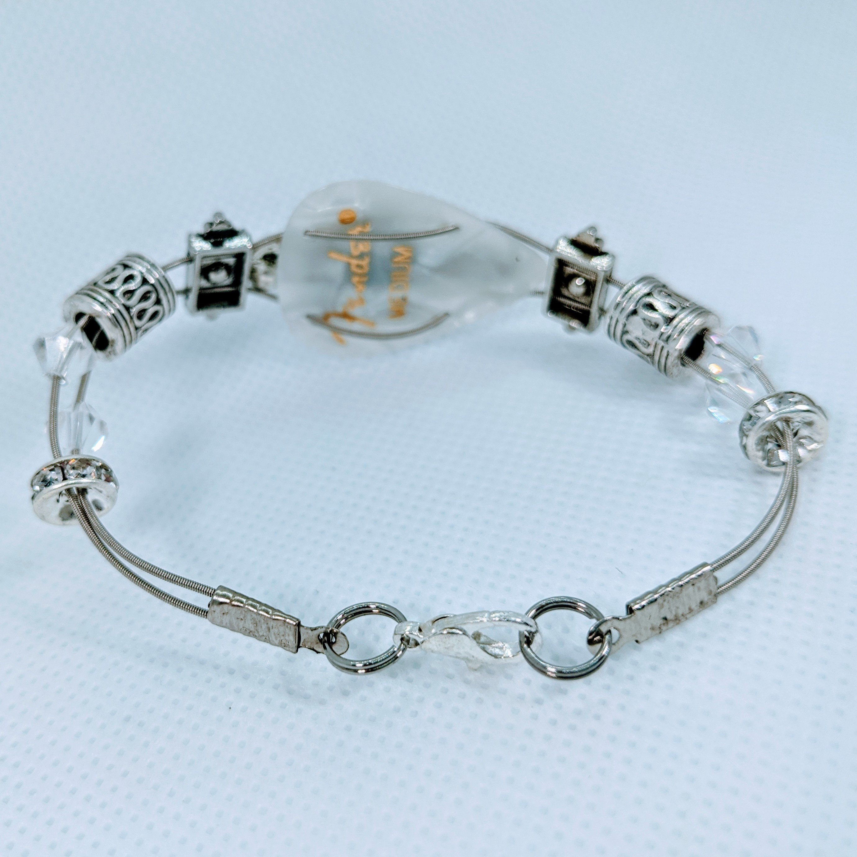 What sets this bracelet apart is the incorporation of genuine Swarovski™ crystals. These crystals are renowned for their brilliance and clarity, adding a touch of elegance to the rugged charm of the guitar strings. The clear stones catch the light beautifully, making this bracelet a standout accessory that will draw compliments wherever you go.