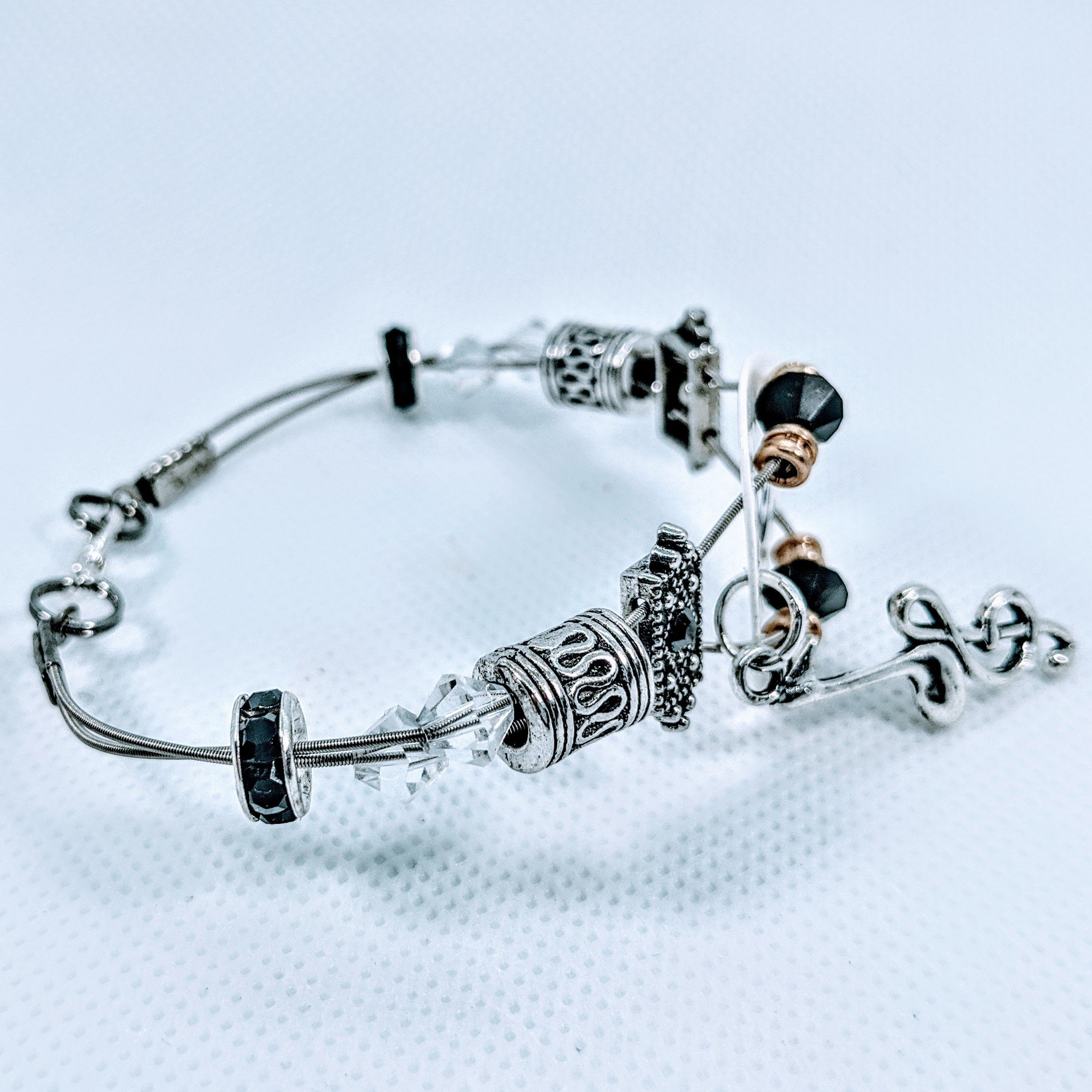 Introducing our exquisite Handmade Guitar String Bracelet, a stunning piece of jewelry that combines the love of music with elegant design. This bracelet is crafted from genuine guitar strings and adorned with sparkling Swarovski™ crystals, making it a unique accessory for any music enthusiast. Whether you're dressing up for a concert, a music festival, or simply want to add a touch of melody to your everyday outfit, this bracelet is the perfect choice.