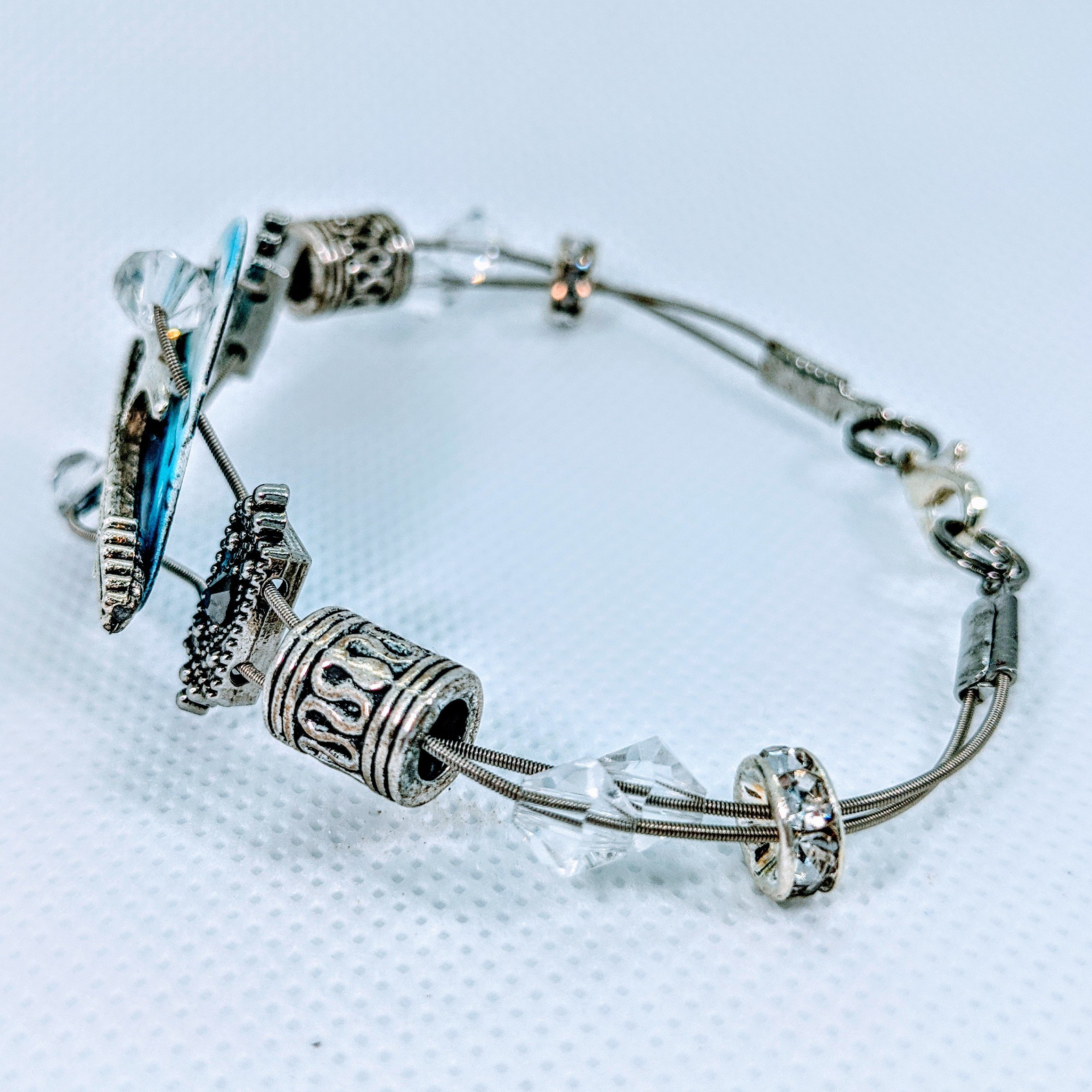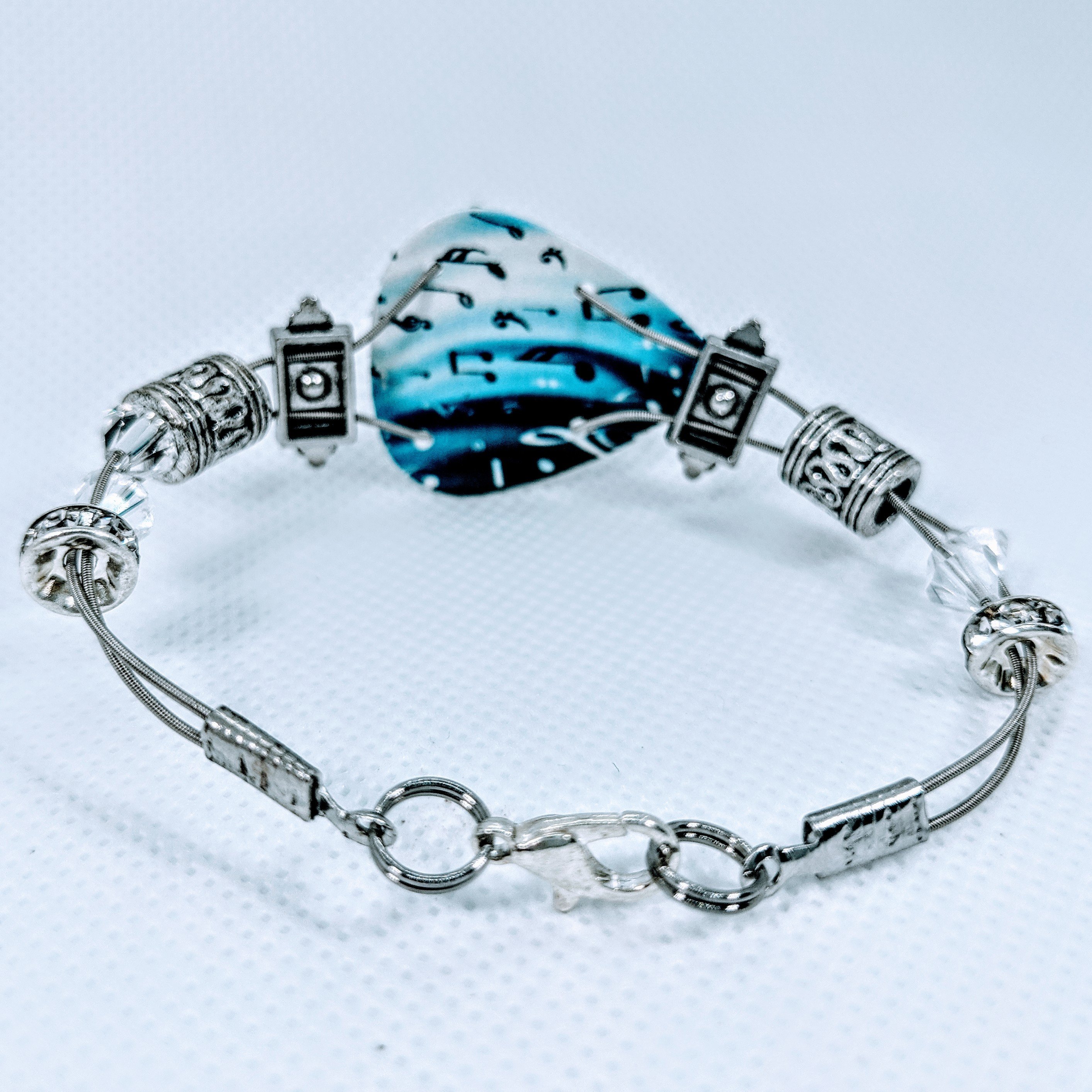 Introducing our exquisite Handmade Guitar String Bracelet, a stunning piece of jewelry that combines the love for music with elegant design. This bracelet is not just an accessory; it's a statement piece that resonates with music enthusiasts and fashion lovers alike. Crafted with precision, this bracelet features genuine Swarovski™ crystals that add a touch of sparkle and sophistication to your look.