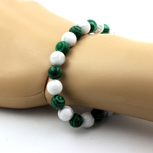 Howlite + Malachite Bracelet 8 mm Beads.