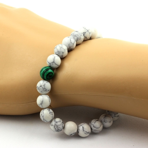 Howlite + Malachite Bracelet 8 mm Beads. Length 19-20 cm. Comes in a box pouch. We can make it to your length on request. Made in France in our A Bijoux workshop.