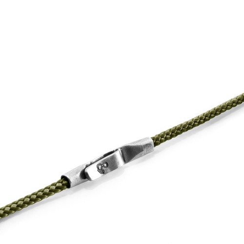 The Khaki Green Liverpool Silver and Rope Bracelet was both designed and skilfully handcrafted completely in Great Britain. Combining British craft manufacturing with a discerning modern-minimalist style, this ANCHOR & CREW bracelet features: