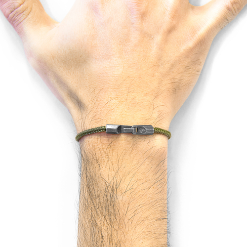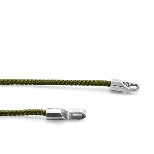 The Khaki Green Talbot Silver and Rope Bracelet was both designed and skilfully handcrafted completely in Great Britain. Combining British craft manufacturing with a discerning modern-minimalist style, this ANCHOR & CREW bracelet features: