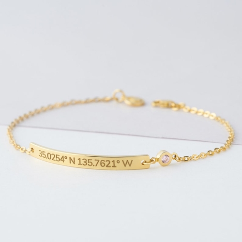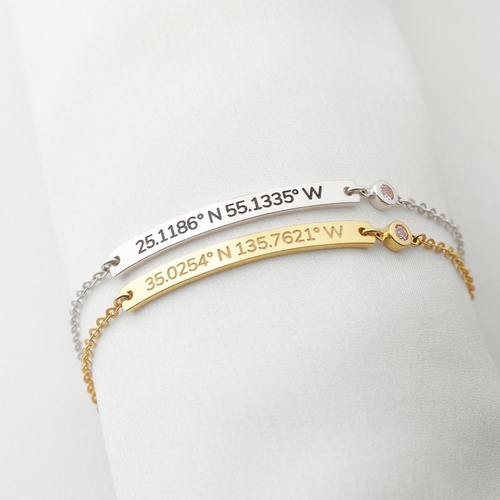 Your favorite GPS coordinates bracelet, now with birthstone! Our longitude and latitude bracelets are modern, lovely way to keep a meaningful location close to your heart. P R O D U C T • I N F O ✅ MATERIAL: High Quality Solid 925 Sterling Silver with 18K Gold, Rose Gold-Plated. Product is safe for sensitive skin, Lead-Free & Nickle-Free. ✅ DIMENSION: Pendant measures approx. 4mm x 4mm x 32mm ✅ ENGRAVING: By default, silver item comes with BLACK engraving and gold-plated item comes with CLEAR engraving. ✅ PERFECT UNIQUE GIFTS: It's a perfect gift for yourself and your loved ones: your mother, friend, girlfriend, grandma, sister, wife, daughter on Anniversary, Birthday, Special Occasions, Christmas' Day, Wedding and much more! All of our jewelry are handmade from scratch and packaged with care in our workshop. Come in complimentary gift box. ✅ SATISFACTION GUARANTEED: Each item is carefully handcrafted & undergoes a rigorous inspection process to ensure our products meet the highest possible standards. All engraving comes with a satisfaction guarantee.